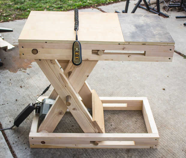 Quería hacer un estilo de tijera ascensor estación de trabajo. Uno de los que trabajan más en una posición sentada. Lo ideal sería que estaba haciendo un banco de Sierra de calar que fácilmente podría cambiar altura de otra persona utilizar cómodamente. Pero me di cuenta rápidamente que usted podría utilizar esto en una gran cantidad de aplicaciones diferentes. Una salida de alimentación para mi sierra de mesa, el carpintero o el cepillo.
