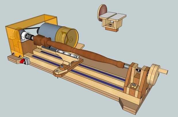 Terminé diseño de un torno que tiene también algunos complementos como una placa frontal para tazones. Tiene también la versatilidad para ser utilizado como una estación rectificadora/afilado y una estación de lijado con lijadora de disco conectable y mesa.