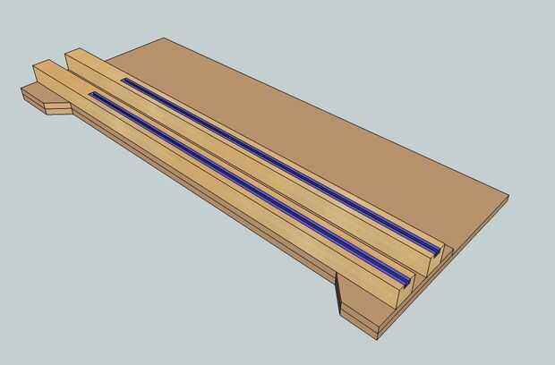 2 pistas de T se sientan en el centro de cada población y allí longitud va hasta el mandril de la contrapunta. Así según el cabezal girando el mecanismo utilizará debe calcular su longitud antes de decidir la longitud de t-tracks. Los que utilizo en el dibujo tienen una longitud estándar de 90cm (3 pies) de largo.