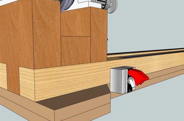 Montar el molino con unos tornillos en un pedazo de madera contrachapada y sólo después de que completes el cabezal girando el mecanismo que atornille hasta la cama del torno con dos bisagras fuertes. Asegúrese de dejar espacio para las bisagras y el workup abajo y cortar 6mm (1/4") más corta desde el borde de la guardia para sentarse.
