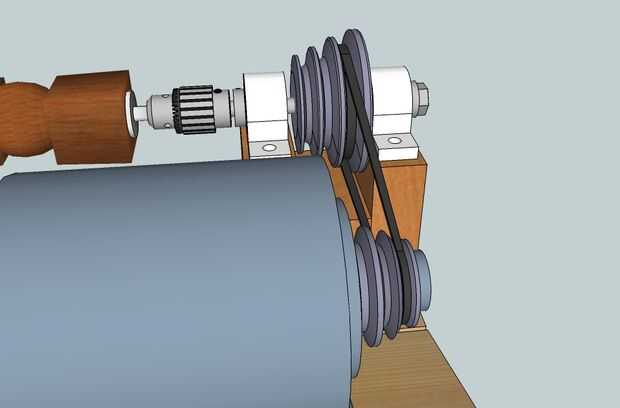 La segunda polea (que es doble del tamaño de la polea del motor) irá en el mandril de la contrapunta y los dos se (hacia usted) con un cinturón. La tensión de las correas se logra desde el tiro libre del motor.