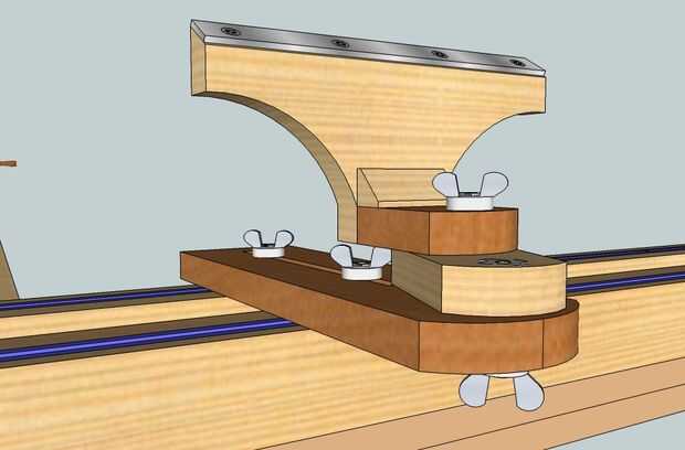 Para este caso aquí he colocado la altura de placa de desgaste acero de herramienta resto para ser de 6mm (1/4") debajo de la línea de centro de tornos. Usted podría ajustar si desea agregar algunas capas delgadas de madera de 3mm (1/8") entre la base del resto de herramientas y de 2 X 2.