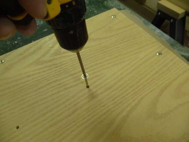 Alinear las dos piezas y empezar a colocar los tornillos, comenzando en el final y va a la otra. Desea un tornillo con una cabeza grande. Te recomiendo estos.