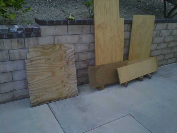 • Se puede utilizar lo que madera tienes puesta alrededor. No tenía suficiente de un mismo tipo para lograr que se haga así que compré algunos 19/32" revestimiento de madera contrachapada. Creo que fue alrededor de $17 por hoja. Necesitaba un poco más de 2 hoja así que tuve que comprar 3.