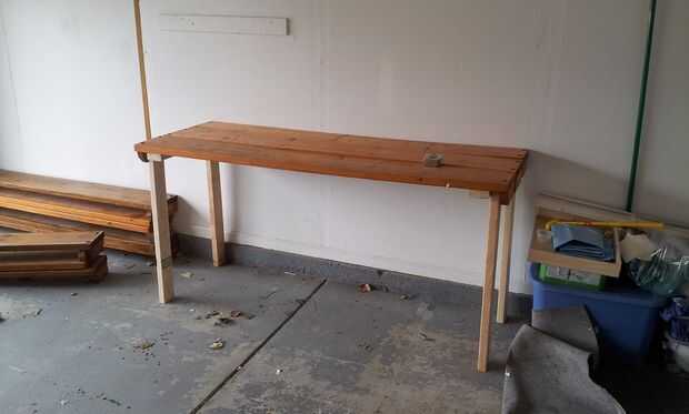 En retrospectiva, debo haber poner un tornillo en cada pierna desde el exterior del bloque original de la madera, para sujetar mejor las piernas. Cayó más de una vez lo que tardan más en conseguir este paso hecho.
