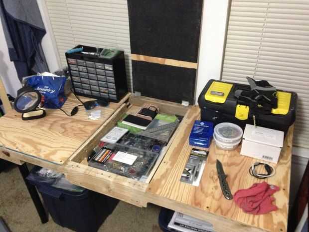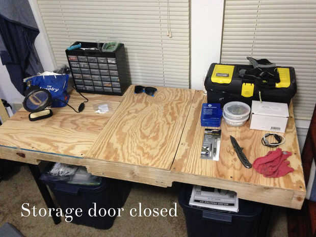 Este instructable le mostrará cómo crear mi banco de trabajo o uno similar. Construí este escritorio como un banco de trabajo para mi apartamento de la Universidad así que puedo hacer mientras aprendo. Pasé $14 en él como encontré toda la madera para construir, sin embargo, usted podría gastar más si tienes que comprar todos los suministros. Buena suerte y me encantaría ver todas con mi proyecto!