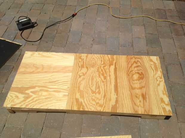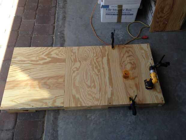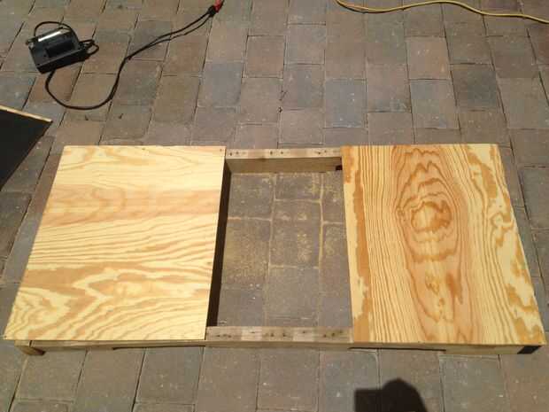 Tomar la madera y cortar (2) 25" por 19" las piezas, para colocarse en los lados lejos izquierdos y derecho de la tabla. Dejando la mitad al descubierto como se ve en el cuadro 1.