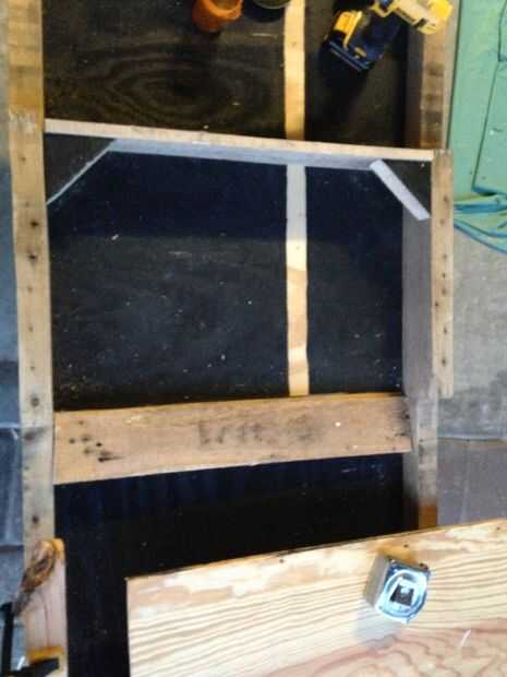 Primero, cortar triángulos de derecho (4) de un 2 x 4 y coloque (2) de ellos a lados opuestos de un 2 x 4 ó 1 x 4 madera plataforma, al igual que en las dos primeras fotos.