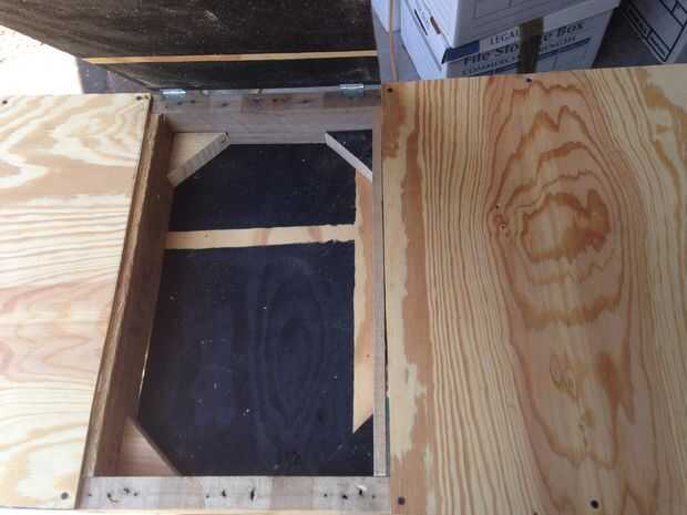 Luego atornille el pasado 25" por 15" pedazo de madera contrachapada para la parte inferior y trasera flip sobre! Como en los cuadros 4 y 5.