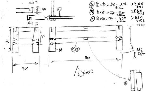 Resultó en 4 patas, un conjunto de corredores para los lados (uno en la parte superior que enclavamientos simplemente con una muesca) y otro en la parte inferior con los dientes así como de corredores mediados 2 (superior e inferior, encajar)