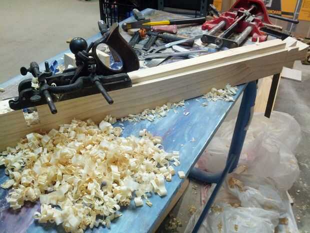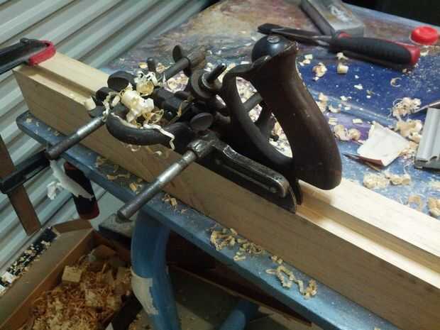 En esta etapa yo en la foto colocando paneles de fondo, creando una plataforma en los corredores de fondo. Para ello, utilicé un vintage stanley hombro plano para cortar una ranura en los corredores de fondo que más tarde puedo colocar los paneles y los tienen perfectamente al ras con el borde de los corredores.