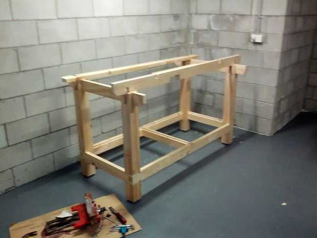 Las piernas fueron perforadas en la parte inferior y patas ajustables instalados (rescatado de un viejo escritorio).