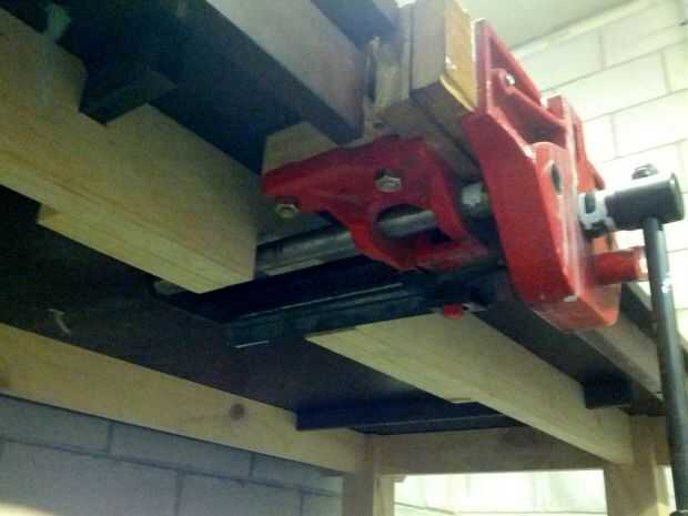 Compré un viejo vicio de trabajo madera y había adaptada a la banca. Fue incluido en la compilación desde el principio para asegurarse de que cabe.