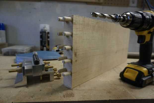 Los extensores cortos y largos deben sujetarse a las patas para hacer la base del Banco. Lo ideal es utilizar la carpintería más indestructible que pueda en esta etapa. Hay muchas opciones aquí: mortaja y espiga, espiga floja, barras de hardware de la precipitación (como tornillos de cama), roscado, etc.. Decidí ir con carpintería de espiga, porque para mí esto fue una operación rápida y sencilla. Tengo una caladora Fresadoras cajeadoras lujo, pero también tengo un uno barato que funciona igual de bien. Utiliza pernos de pasador extensibley poner 10 tacos en cada empalme, con un montón de pegamento. Que no estamos hablando de tacos de Ikea aquí – esto es la fuerte articulación que debe ser suficiente para este banco.