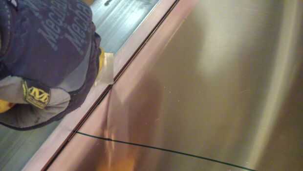 Después se anotó utilice el borde recto para doblar la hoja de cobre a lo largo de la partitura. Trabajar hacia adelante y hacia atrás hasta que se rompe limpiamente.