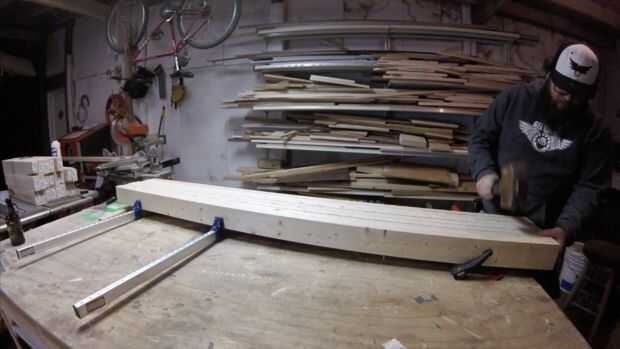 Después de que las tablas son un poco preparadas, hacia fuera viene el pegamento. Pegué tres secciones por lo que puedo ejecutarlos por el cepillo después de que el pegamento se seca. El ancho terminado mi top es de alrededor de 30".