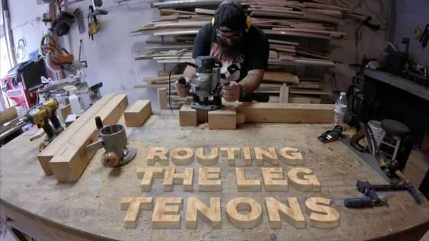 Con una cruz corte trineo con mi sierra de mesa, configurar la profundidad de la cuchilla para mis espigas. Mina eran espigas de 1-1/4". El propósito de usar la Sierra de mesa para hacer el primer corte todo el camino alrededor de la Junta es para darle una agradable, línea recta y hacer mucho más fácil de usar el router para acabar con. Hay muchas maneras para cortar espigas. Esto fue un gran método para las herramientas que tengo en mi tienda.