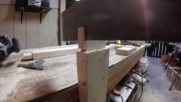 Una vez todas las mortajas, ahora es el momento de montar la base. Rellenar un montón de pegamento abajo en los agujeros y SMOOOSH! Asegúrese de que las patas son cuadradas con los tirantes de 2 x 4. No tienen abrazaderas lo suficiente para unir todo, así que utilicé algunos trinquete las correas alrededor de todo el asunto y trabaje bien. Sólo asegúrate de cruzar la Plaza la base!