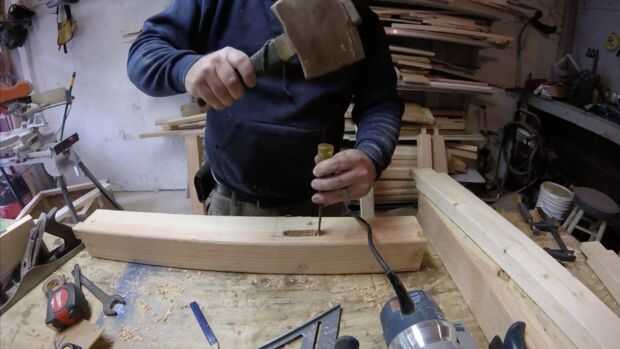 Una vez que todas las espigas se cortan, su tiempo para hacer algunos agujeros para encajar en estas cosas. Rastrear su espiga en tu post. Perforar varios agujeros con una broca forstner es una gran manera de conseguir las mortajas iniciados. Asegúrese de marcar la profundidad de la mortaja en la broca con alguna cinta.