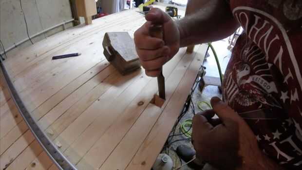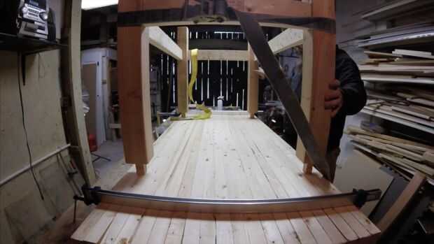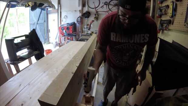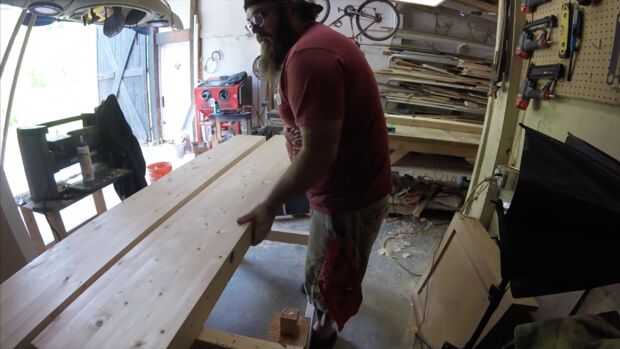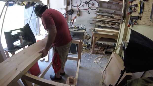 Con base en el piso, he cubierto las espigas y las articulaciones de la parte superior con pegamento para madera y rompieron todo juntos. El peso de la parte superior ligan todo muy bien!