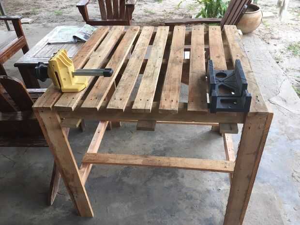 Cómo construir y construir un gran banco herramientas Banco de trabajo y accesorios de una sola grande 2 x 4 madera tarima.Completa de la imagen de cheque de banco.Paso 1: 1: construcción temprana, adquirir una plataforma de envío de madera de 2 x 4,