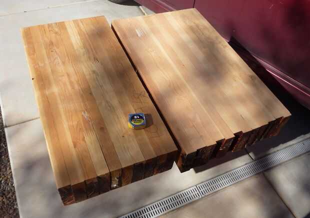 Trozo de lla que encontrará será cortada en un lado y por el otro queda como sucedió con la empresa. Usted necesita decidir si necesita ser arreglado. Muestra se pedazos enredarse en un sitio de construcción de contenedor de basura. El de la izquierda tiene un final que no se ve mal. (Tiene el aspecto re-purposed industrial a él). Es 5" de espesor, 14-3/4" ancho, 31-1/2" de largo, y en mi opinión es el tamaño perfecto para una mesa. Si tienes suerte suficiente para tal fina pieza solo limpiar con un cepillo de alambre, lijar los bordes y sáltese el resto de esta discusión.