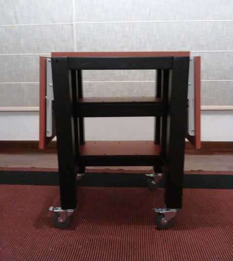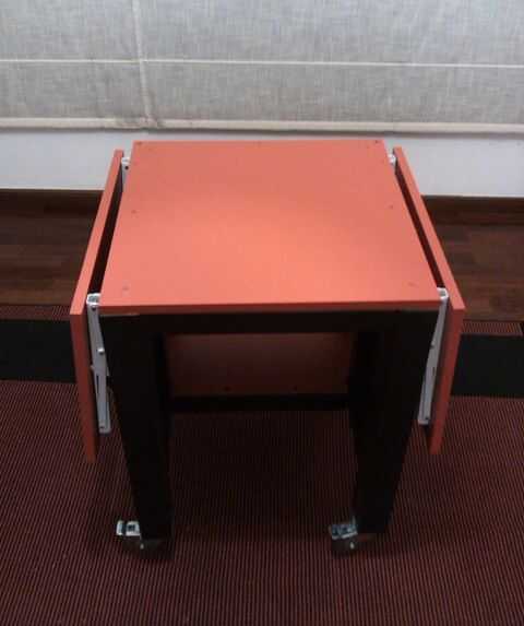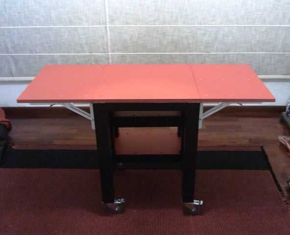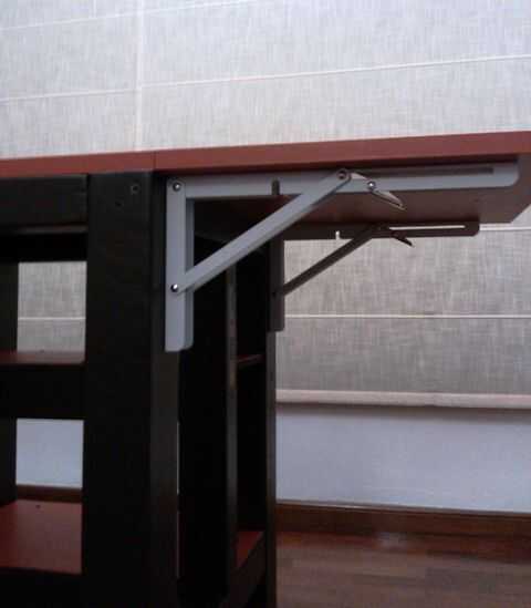 Fue en este punto que recordé que había vi algunos soportes con bisagras frescos en una ferretería que me permita superar mi "problemas de tamaño de mesa".