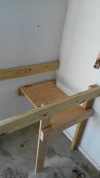 Si tuviera suficiente 2 x 4, habría corté este tablero para el espacio, pero, trata sobre el uso de las sobras, y no tengo mucho izquierda. Es eficaz aunque un poco corto. Esto apoyo del lado de la parte superior de madera contrachapada.