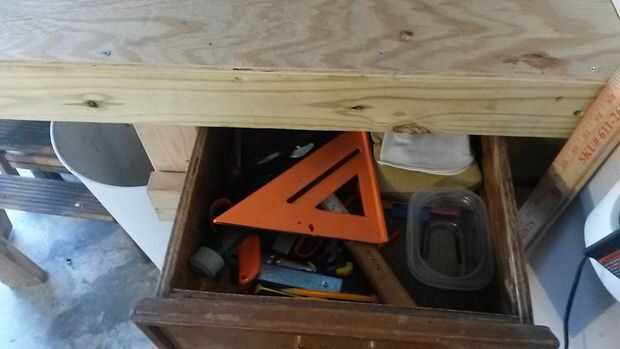 siempre tengo todas mis cosas en el piso. Así que decidí hacer un banco de trabajo. Pero porque yo no pude ponerlo en el garaje que pensé que me iba a movabable. Es un proyecto difícil. Tarda unos dos días para hacer. Y es algo grande y pesado así qu