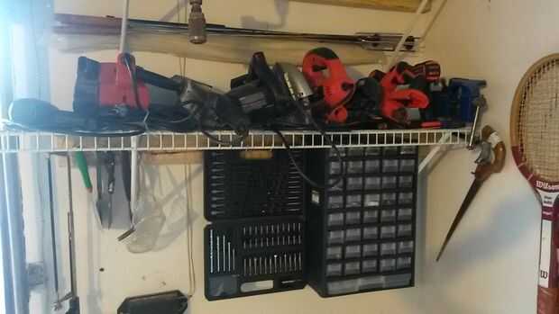Herramientas pequeñas pueden ser colgados con ganchos de S debajo del estante. También se podría instalar un pegboard.