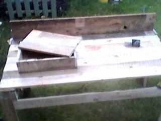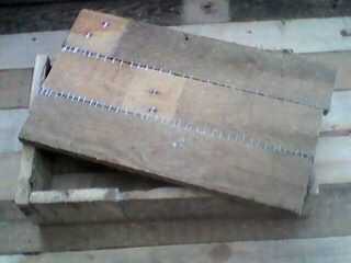 4: últimas piezas pequeñas y es muy probable que algunos irregulares de madera, corte limpio aunque hay en una madera dura del nudo y pedazos restantes de la forma 2 o más de la madera más grande para el respaldo, forma la caja superior e inferior grapa cada 3 piezas juntas y añadir tamaños hasta que se convierte en un cuadro de agregar una tapa o los lados con cualquier retales sobrantes , utilizando grapas y tal vez algunos pequeños clavos para fijar la caja Junta, igual que el tablero principal, hice un pequeño nailbox de las restantes piezas de borde biselado de madera hasta que hubo izquierda.