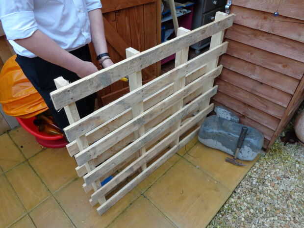 Paso 1: Obtener 2 paletas... Mantener una plataforma para la tapa de la mesa de trabajo y desmontar el otro para las piernas y soporte para la mesa de trabajo. La parte más difícil es tomar las paletas separadas y luego conseguir los clavos de las ta
