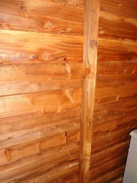 Cuando medí mi escritorio en el cobertizo había un soporte de madera que era en el camino de un ajuste al ras de la plataforma cortado para que le cupiera.