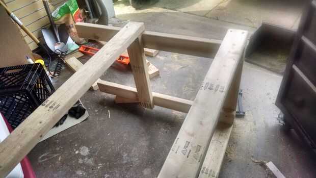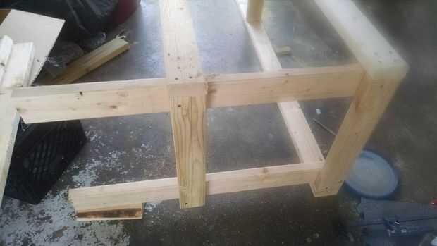 Adición de las piernas, viró con un tornillo hasta que todo esté a escuadra. la barra transversal trasera está fijada en 14" de la parte inferior. Esto permite que para que las cajas de leche ser almacenado por debajo. Para hacerlo más fácil, me gira en el lado y luego terminó cada empalme.