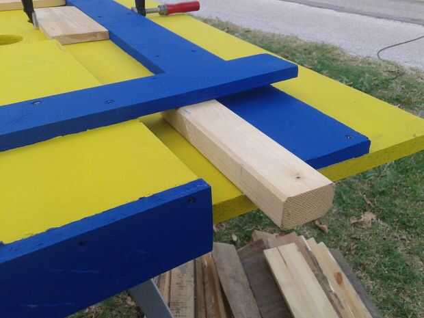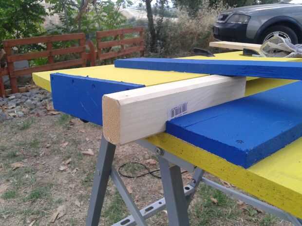 La barra de desplazamiento horizontal tiene un grosor superior (~ 2cm) pedazos de madera y más ancho (10-15cm). Es más largo que la placa de deslizamiento y puede montar sobre la madera de la pieza a cortar y la constante travesía.