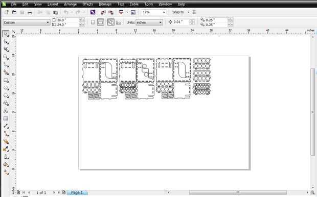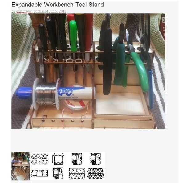 Hizo un gran trabajo configurar los archivos para ser cortada en cualquier cortador del laser. Yo tengo la suerte de disponer de 4 cortadores de Epilog Laser modelo Legend 36EXT. Utiliza Corel draw para crear una página para los cortadores y luego añadir los diferentes módulos. Todos sus archivos se instalan en mm por lo que necesita para asegurarse de que al abrirlos en escala mm. Una vez que se realiza los trabajos de corte muy bien. Creó las ranuras de la madera contrachapada de 3mm pero usaba 1/8 sin problemas. Tiene dos versiones, he usado la versión R2.1. Imprimí la expansión R2.1, R2.1 insertar cuadro, gran titular de la unidad Base de la R2.1, pasador de carrete R2.1 Unidad Base y tanto la R2.1 superior grandes herramientas y herramientas pequeños superior R2.1. Imprimí varias copias porque quería tener la flexibilidad. Una cosa que encontré es en la expansión de R2.1 hay dos conectores de forma U. Desea copiar estos e imprimir más de dos. Sobre todo si quieres hacer varios stands ampliados.