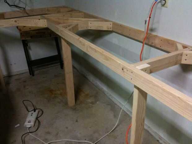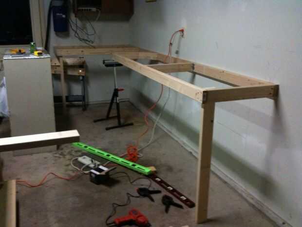 Después de instalar los "headers" para montantes de la pared, he instalado al 2 x 4 travesaños que conectan la parte frontal a la cabecera trasera. Del dedo del pie-había clavado estas piezas mediante tornillos de 2,5 pulgadas. Después de asegurarse que todo estaba cuadrado y nivel, he instalado extensiones de las patas al frente de la forma. No de anclaje a la planta, pero podría hacerlo en el futuro para el mayor pedazo de la mente.