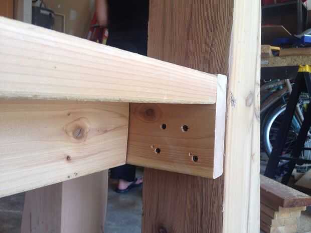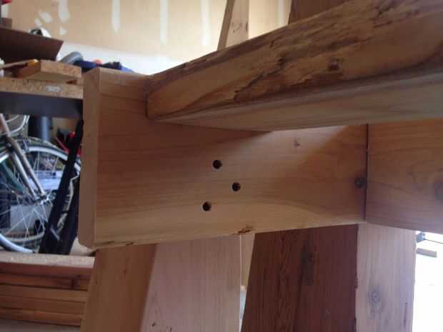 Fijar la estructura de soporte para las piernas y me había instalado 4 tornillos en cada pierna. En retrospectiva, hubiera preferido utilizar tornillos pasantes para realizar las conexiones más fuertes.