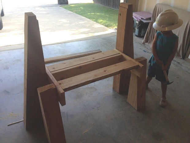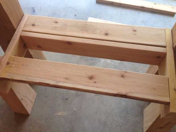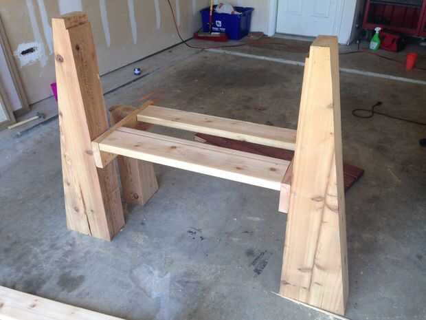 Las piernas se corte con una tapa plana de 3 "x 6" y corte en un ángulo 30 grados. La altura total de las patas delanteras es 24" y las patas traseras son 45" alto.