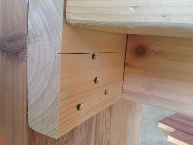 Me olvide de tomar alguna fotografía de las piezas antes del montaje, pero creo que las imágenes con dan una buena idea de cómo se hacía. Antes de montar nada, me aseguré de lijar todo el conjunto con papel de grano arena 60. Las patas de cedro había una tonelada de astillas en ellos, así que siguió adelante y lijar las piernas a un grano 150.