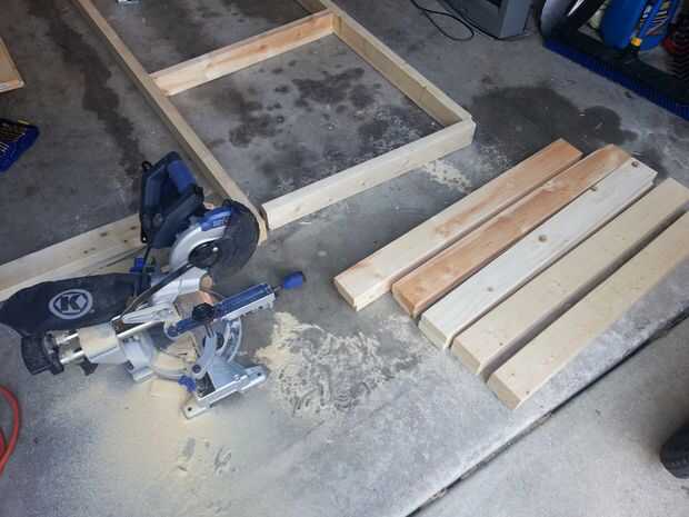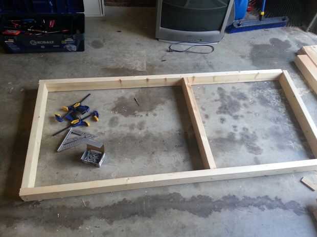 El marco inferior es corte de 2'x 4 a 6 pies y tres 30" piezas. Esta parte era bastante simple, sólo tenía que asegurarse de que mi caja estaba cuadrada. Las piezas fueron atornilladas con dos tornillos de 2 1/2" en cada junta, para un total de 12 tornillos. Luego se repite este paso, como el marco superior es exactamente el mismo, aunque más tarde decidí mover el soporte central, pero más en eso más tarde!