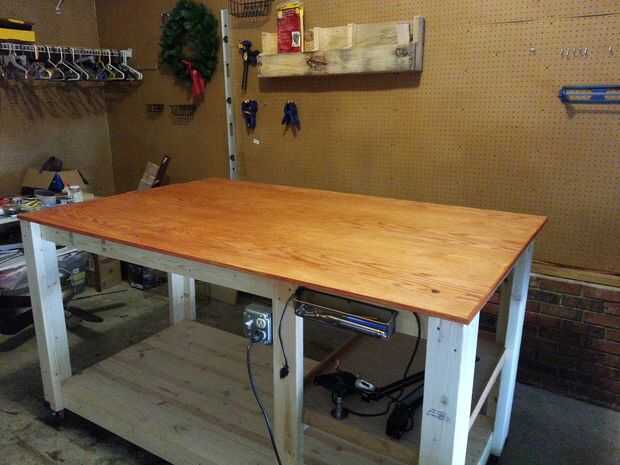 mi interés en mis proyectos de carpintería desarrollado y llegó a ser cada vez más complejo, me di cuenta de que era tiempo de poner mi superficie de trabajo improvisadas (caballetes y una puerta vieja) a un lado y construir Banco de trabajo de un ca