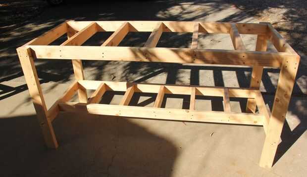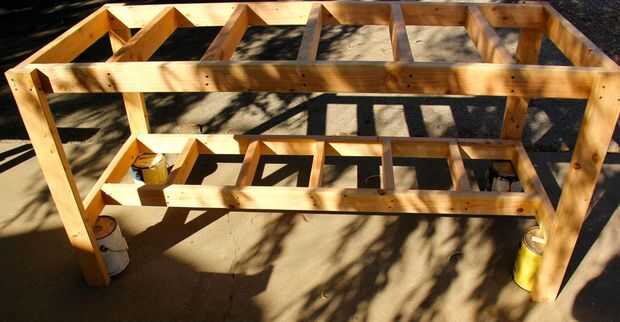 Después finalmente de un apartamento y una casa, descubrí que tenía espacio! Los inquilinos anteriores dejaron una mesa de altura de 2 1/2 pies en el garaje, pero era apenas ideal para hacer cualquier tipo de trabajo. Así nació la idea de un banco de