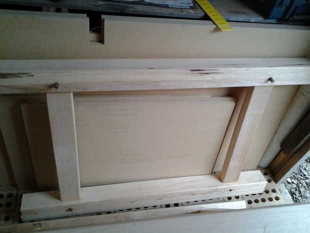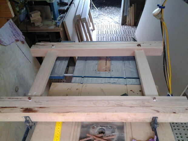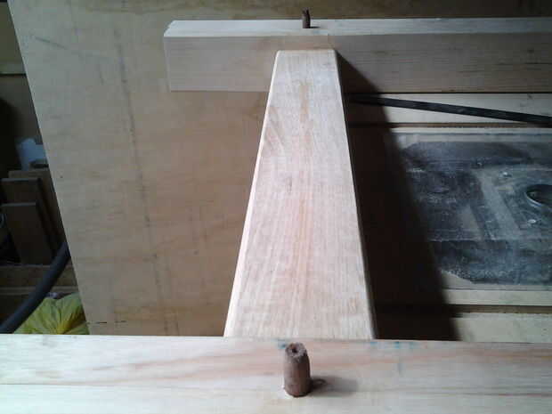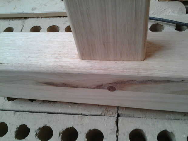 para mantener la parte inferior de las piernas de la mudanza coloca una longitud de chatarra fina de madera diagonal a través de las 4 patas y condujo un pequeño clavo en entonces.