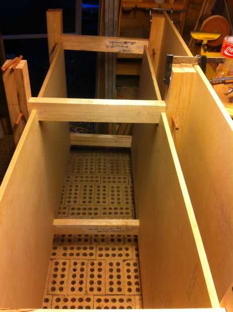 Encolar y atornillar un 90 x 45 x 800 largo en el interior de las patas exteriores. ellos llaman a esto una cala