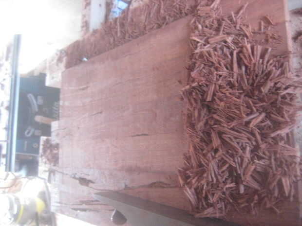 Corte el poste hasta la longitud utilizable de longitud 1000 mm entonces hasta 23 mm de ancho y finalmente hacia abajo a 19 mm, acabado.