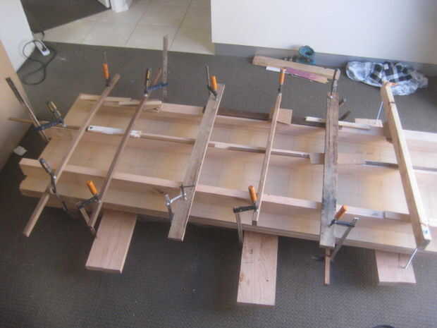 Alinee cuidadosamente los bordes de las 3 tablas, si creará trabajo enorme más adelante.