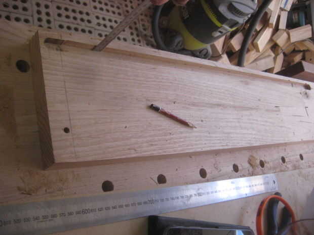 medir y marcar 1/2" en de cada extremo de la tabla superior a lo largo de la veta.