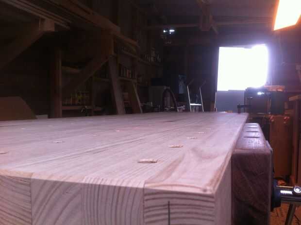 después de varias llamadas de teléfono encontré una fábrica de muebles que pondría la parte superior a través de su lijadora de doble cilindro.