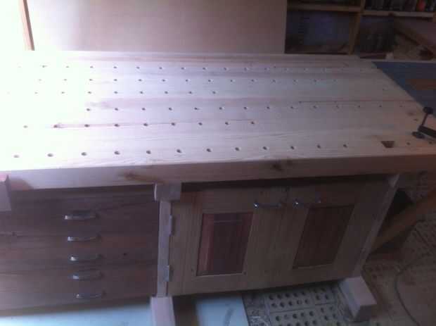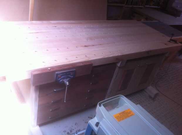mi interés en mis proyectos de carpintería desarrollado y llegó a ser cada vez más complejo, me di cuenta de que era tiempo de poner mi superficie de trabajo improvisadas (caballetes y una puerta vieja) a un lado y construir Banco de trabajo de un ca